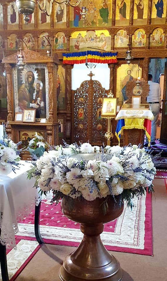 Un decor bine ales evidențiază zona centrală a botezului și contribuie la o atmosferă elegantă și coerentă.