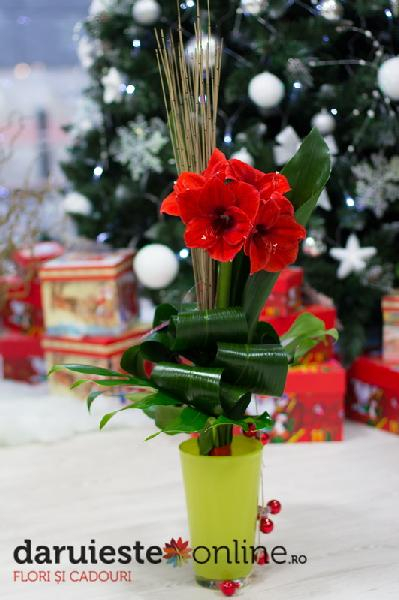 Alege acest superb buchet amarillys potrivit pentru Craciun dar si pentru oricare alta ocazie. Daruieste cele mai frumoase aranjamente naturale de Craciun lucrate manual in floraria noastra. Acest prous nu contine si vaza de sticla.